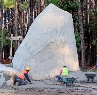 El nivel de terminación y ejecución de detalles logrados en nuestros trabajos a repercutido muy bien en nuestros clientes y nos ha impulsado a cruzar las fronteras realizando trabajos de otra envergadura y calidad como ( EL Meteorito) Clon de Roca meteórica en la Chacra la Pequeña situada en San Pedro / Colonia del Sacramento R.O.U.